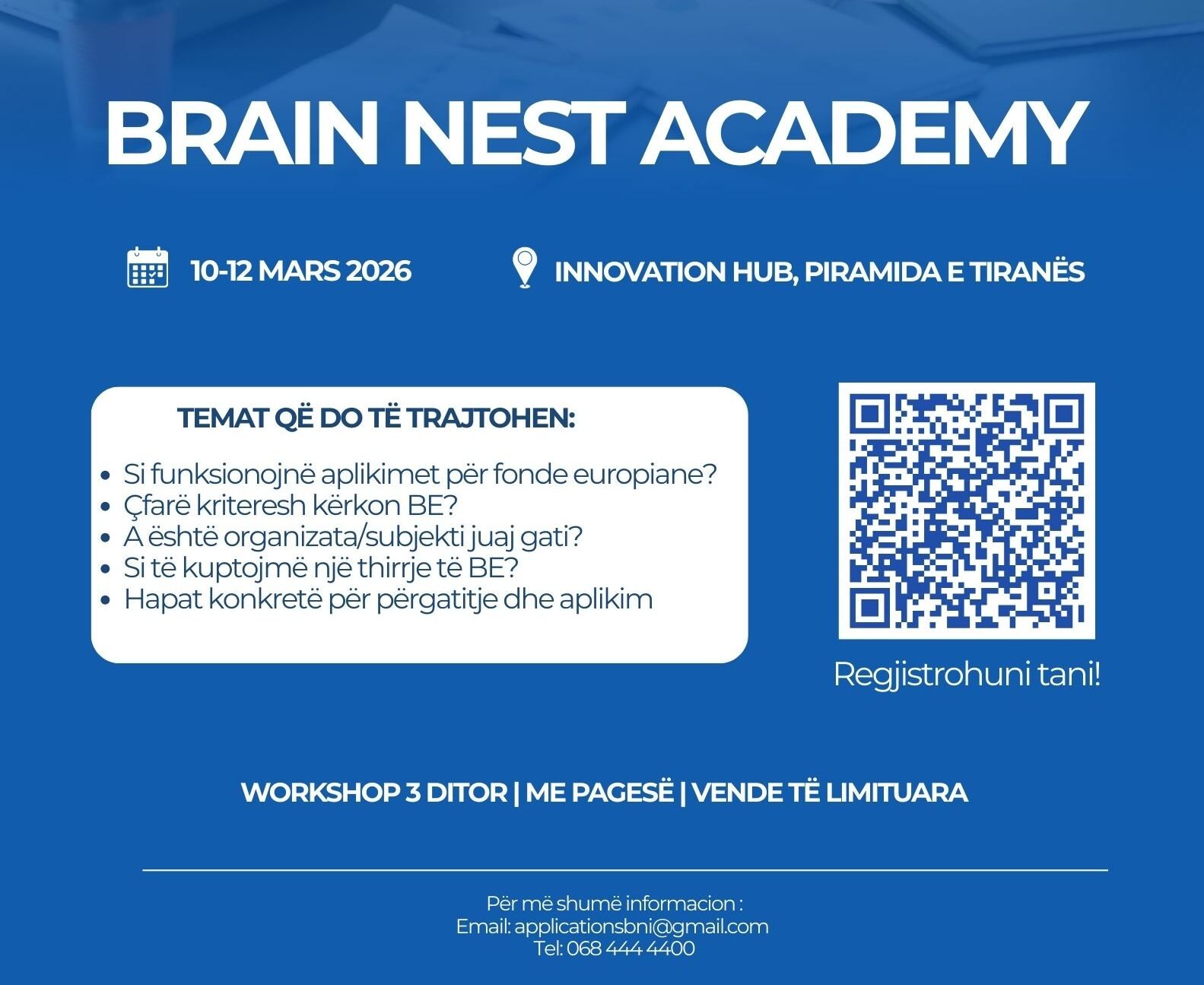 Si të aplikoni me sukses në projektet e BE-së – Workshop Praktik nga Brain Nest Academy February 10, 2026 Lexo me shume »