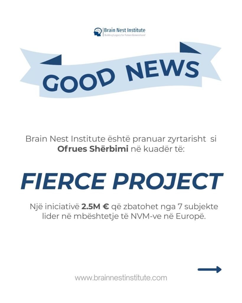 Brain Nest Institute është pranuar zyrtarisht si Ofrues Shërbimi në kuadër të FIERCE Project, një iniciativë europiane me vlerë 2.5 milion euro, e financuar nga programi Horizon Europe.
