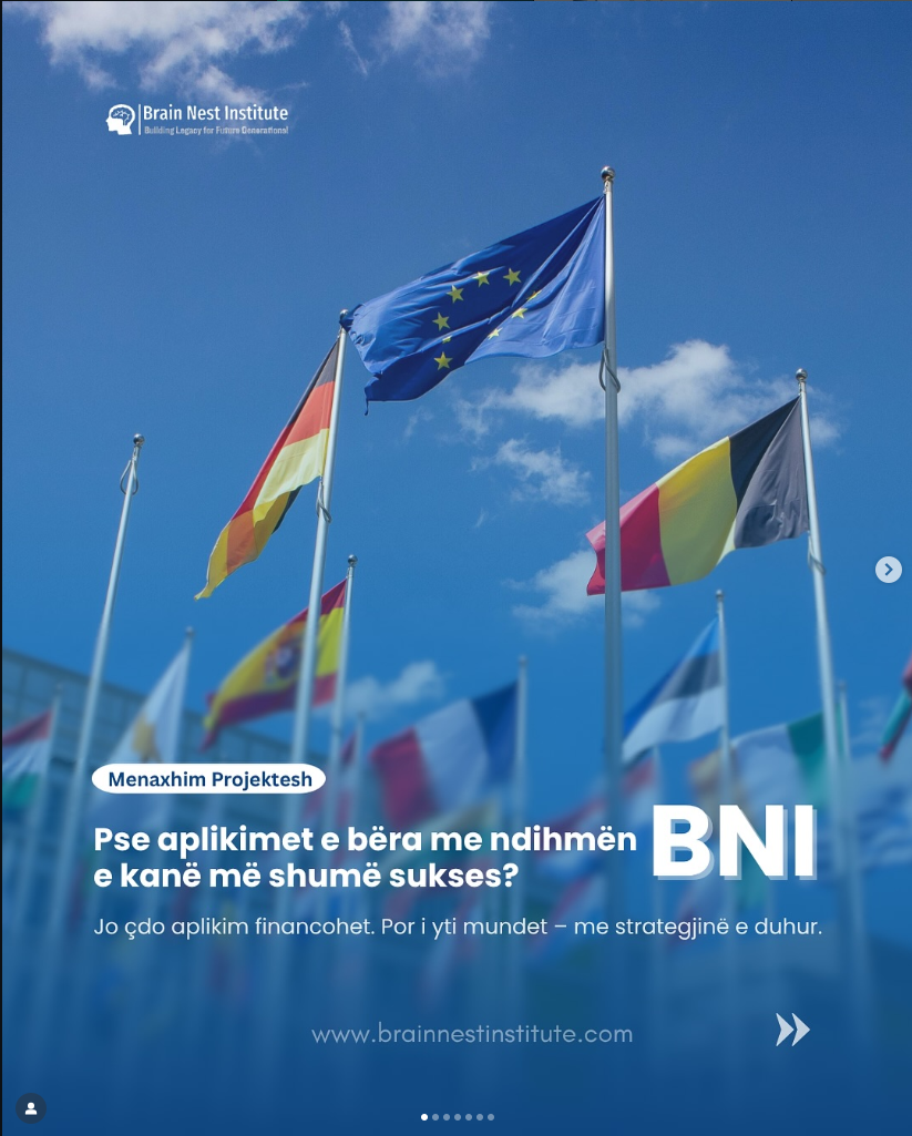 Te Brain Nest Institute, ne i kthejmë idetë në projekt-propozime të forta, të argumentuara dhe profesionalisht të strukturuara, të afta të bindin donatorët dhe të sigurojnë financime reale.