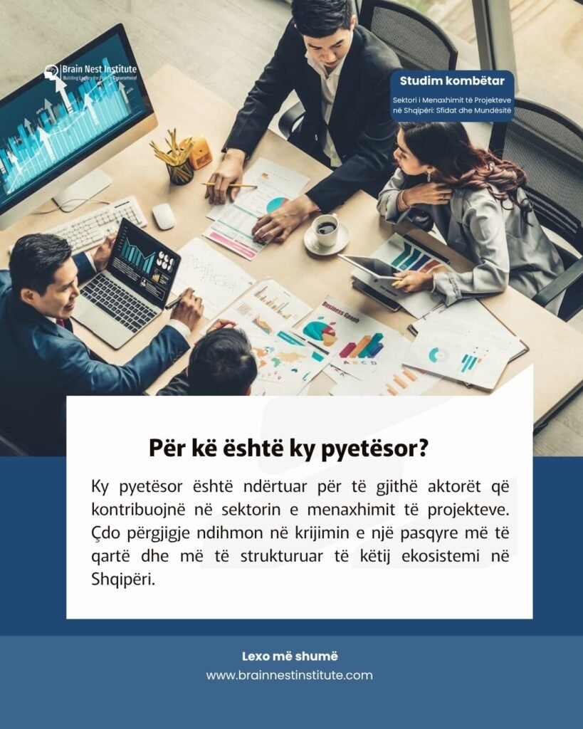 Ky pyetësor është konceptuar për të përfshirë të gjithë aktorët që operojnë ose ndikojnë në sektorin e menaxhimit të projekteve në Shqipëri.